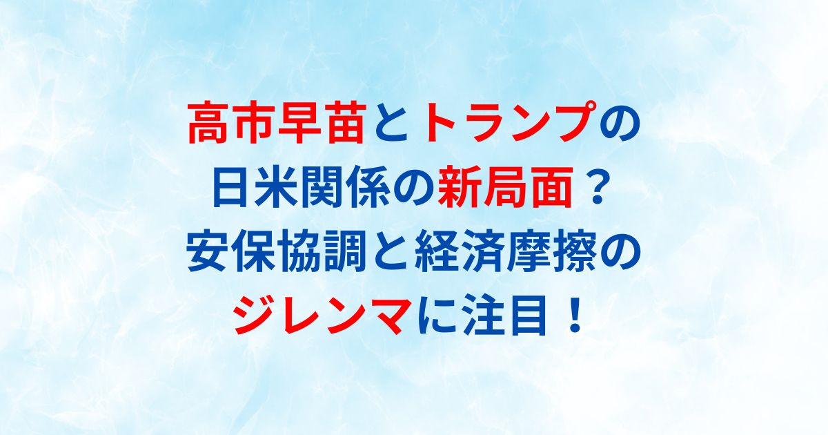 高市早苗氏とトランプ氏の関係は、日米関係に新たな局面をもたらす可能性があります。