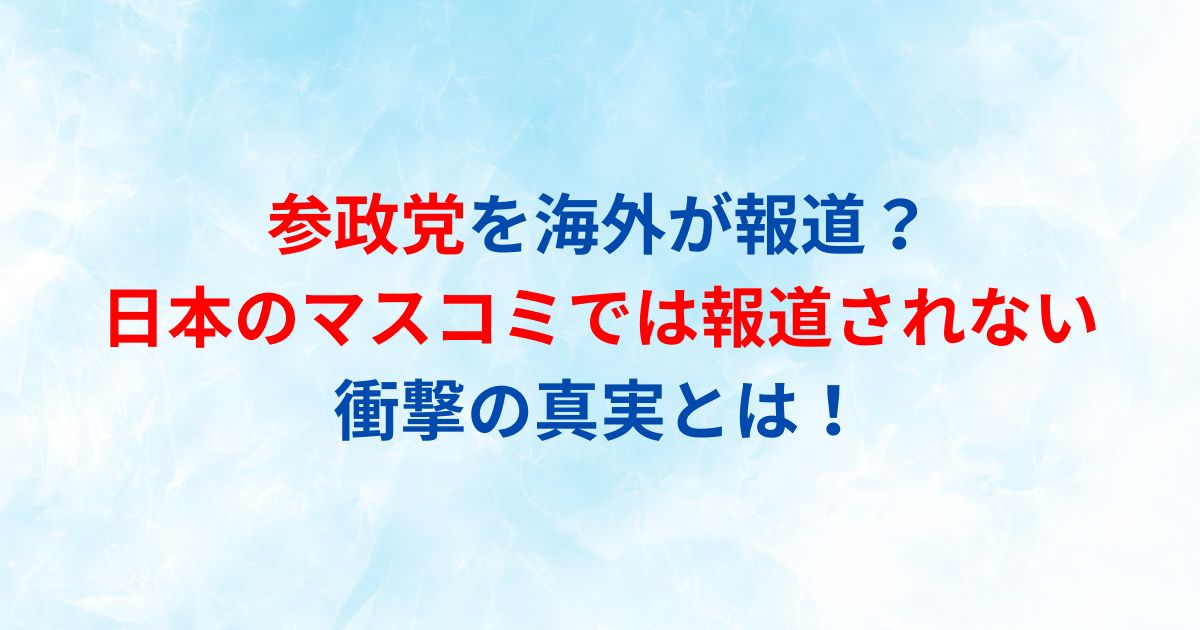 今回、参政党を巡る海外メディアの報道と、日本のマスコミがあまり触れていない真実について見てきました。