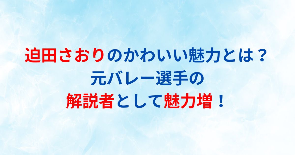 こんにちは!今回は、元バレーボール選手として活躍し、現在は解説者として人気を集めている迫田さおりさんの魅力についてお届けします。