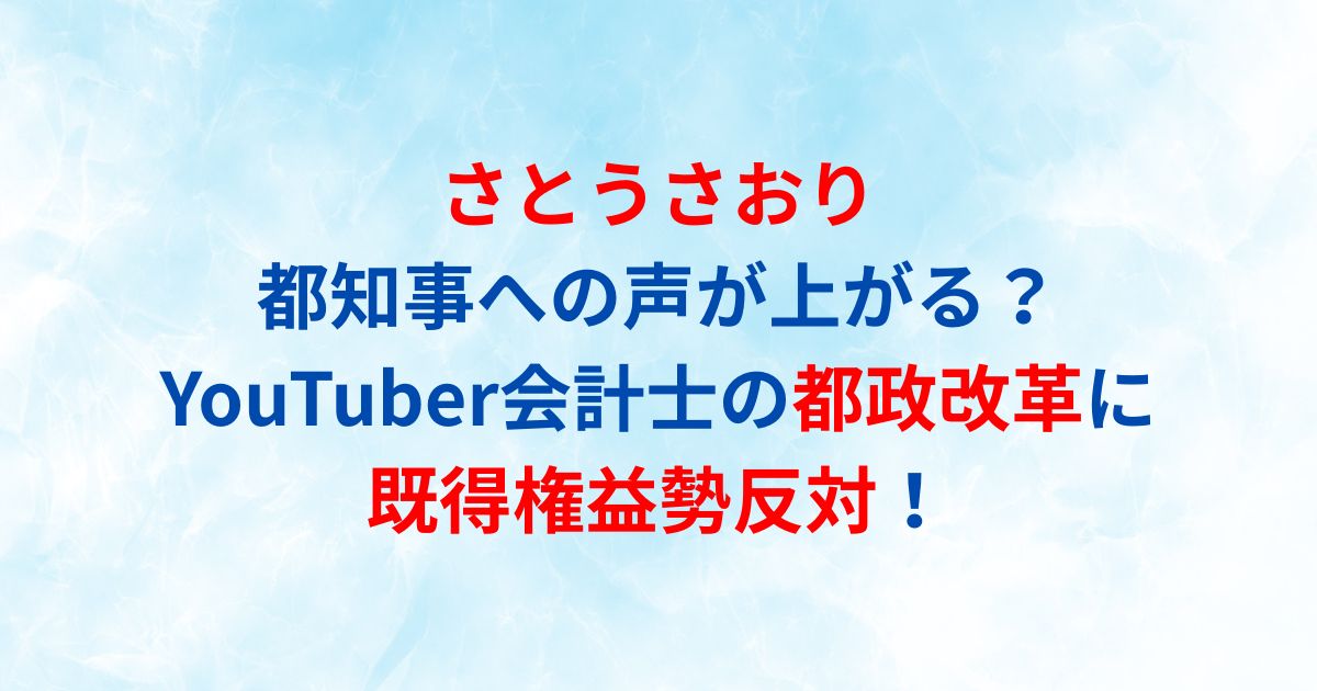 本記事では、さとうさおり氏の経歴や都政改革への取り組み、そしてそれに対する反応を詳しく見ていきます。