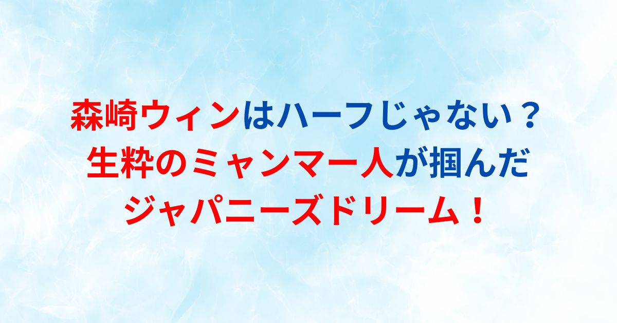 森崎ウィンさんの成功story、そしてミャンマー人として日本で夢を掴んだ彼の姿から、私たちが学べることは何でしょうか?