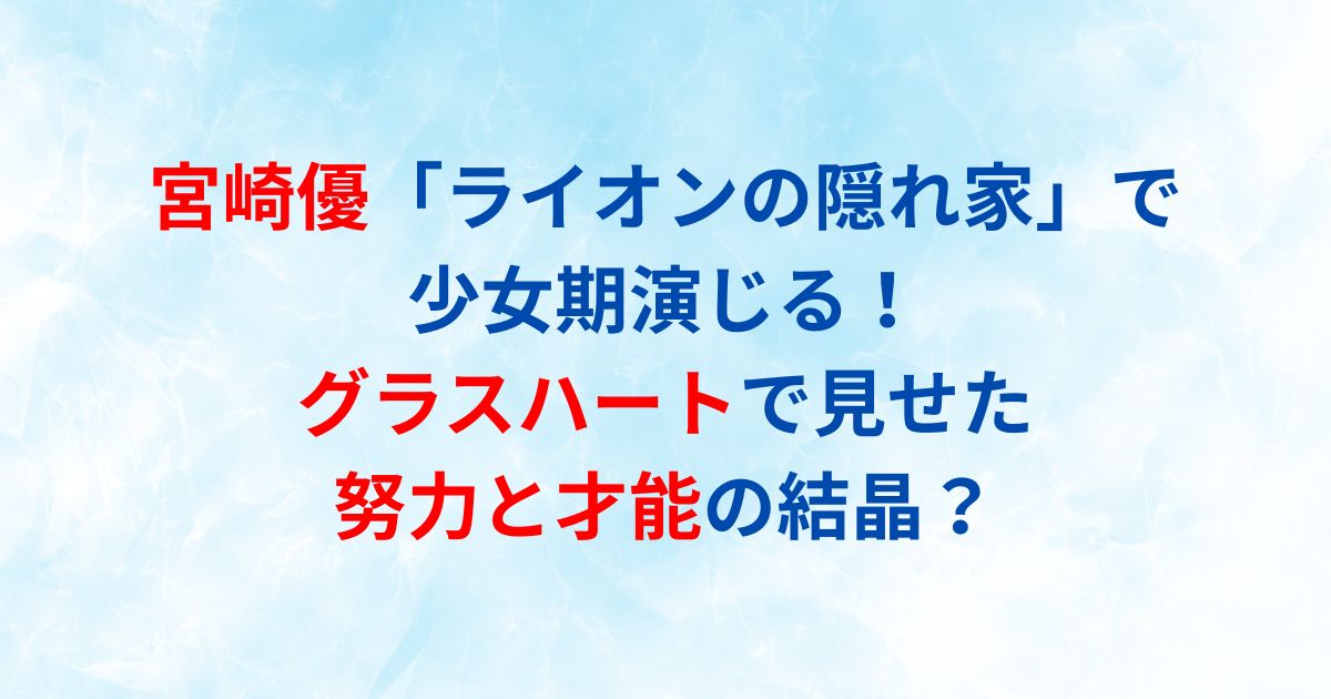 今回は、「ライオンの隠れ家」での宮崎優さんの役柄や、彼女のこれまでの代表作、そして女優としての成長過程に迫ります。