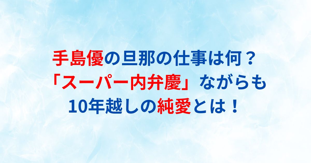 そこで今回は、手島優さんの旦那さんの仕事内容や、感動的な馴れ初めエピソード、結婚生活の様子について詳しくお伝えします。