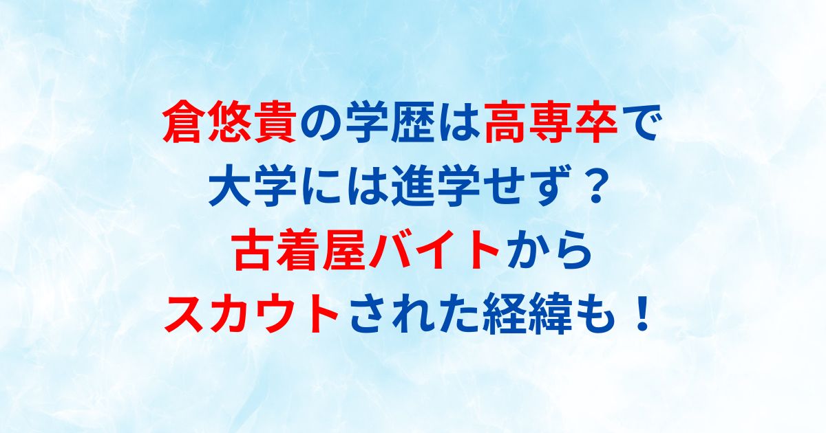 倉悠貴さんの学歴について気になっている方も多いのではないでしょうか?
